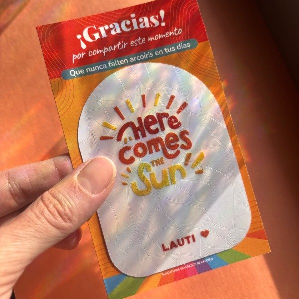 Stickers generadores de arcoíris impresos con tecnología UV y tintas de alta calidad.