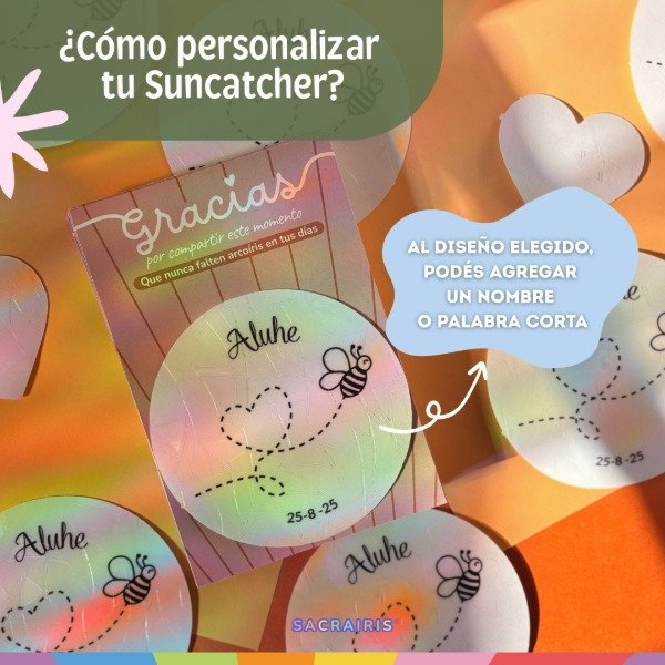 Dejanos en “notas de pedido” o por mail a holasacrairis@gmail.com los datos a personalizar (nombre, fecha o mensaje corto de hasta 4 palabras).